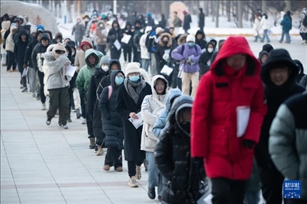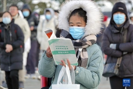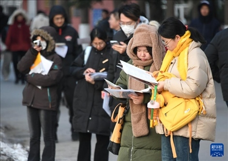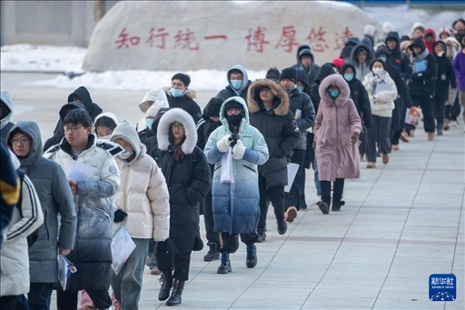 12月23日,在黑龍江省哈爾濱市,考生在哈爾濱理工大學考點排隊進入考場。