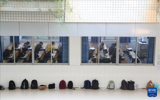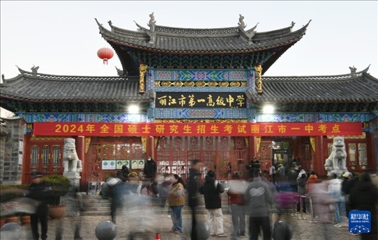 12月23日,在云南省麗江市一中考點,考生準備進入考場。