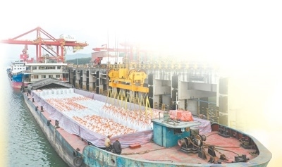 “龍頭港是糧食到達(dá)涪陵后的陸運(yùn)起點(diǎn)。憑借涪陵區(qū)完備的高速公路網(wǎng)和鐵路專線,到港糧食基本能在24小時(shí)內(nèi)到達(dá)市內(nèi)的其他區(qū)縣?!备⒘陞^(qū)綜合經(jīng)濟(jì)研究中心副主任周康龍介紹,涪陵擁有5條過(guò)境高速公路,通車?yán)锍踢_(dá)175公里,鐵路通車?yán)锍踢_(dá)207公里。去年,涪陵向重慶中心城區(qū)、周邊區(qū)縣、相鄰省份提供原糧9萬(wàn)噸、成品糧油32萬(wàn)噸、豆粕15萬(wàn)噸、飼料35萬(wàn)噸。