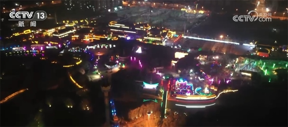在河南漯河,近兩萬盞造型各異的燈飾把城市裝扮得格外喜慶。夜幕降臨,道路兩側(cè)燈光璀璨,古風(fēng)建筑更顯得美輪美奐。此外,當(dāng)?shù)剡€增加了水上國(guó)風(fēng)節(jié)目表演,迎接新年到來。