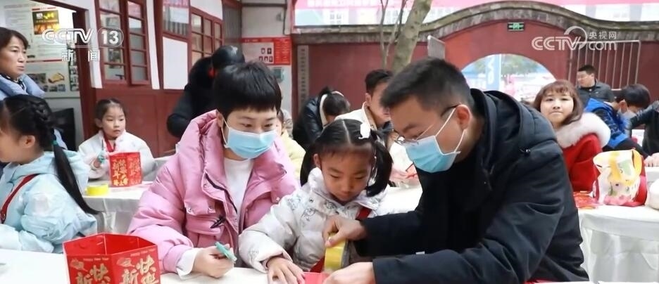 在四川江安,大家走進(jìn)博物館,體驗制作手工燈籠。在志愿者的指導(dǎo)下,家長和孩子們粘燈籠紙、拼插、貼紙花,不一會兒,一個個富有新年元素的手工燈籠展現(xiàn)在眼前。