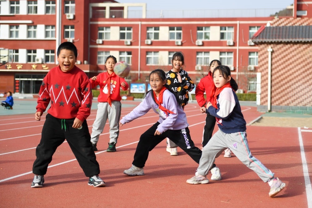 北京市門(mén)頭溝妙峰山民族學(xué)校的學(xué)生們?cè)谏象w育課(12月6日攝,無(wú)人機(jī)照片)。新華社記者 鞠煥宗 攝