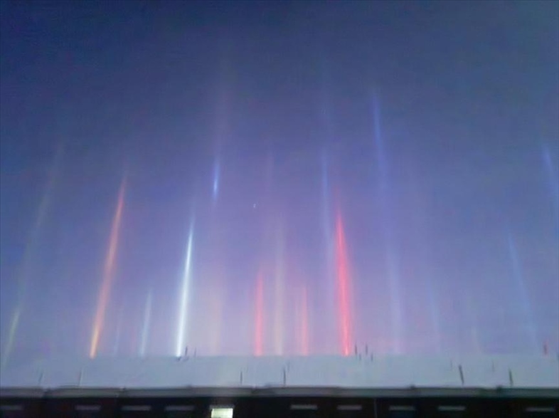 內(nèi)蒙古額爾古納市出現(xiàn)“光柱”奇觀,如夢(mèng)似幻。據(jù)悉,“光柱”現(xiàn)象是由于極寒天氣空氣中的冰晶反射燈光形成的自然奇觀。