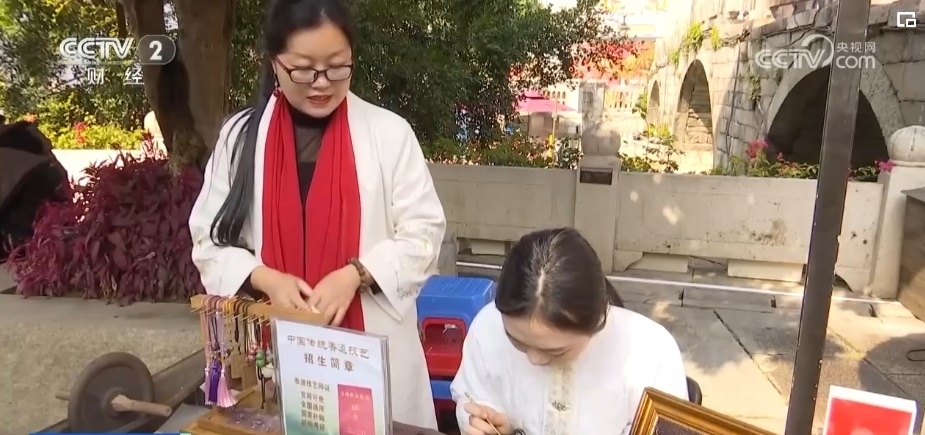 在上下杭?xì)v史文化街區(qū),“杭肆”文創(chuàng)市集也十分熱鬧。這里通過文創(chuàng)精品展示、文創(chuàng)互動體驗等形式,打造了沉浸式的非遺潮玩體驗??啥ㄖ茍D案的畫扇、捏面人,精美的鉤針擺件、漆藝文創(chuàng)周邊,精致的國風(fēng)飾品等,都讓傳統(tǒng)手藝煥發(fā)了全新的生命力。