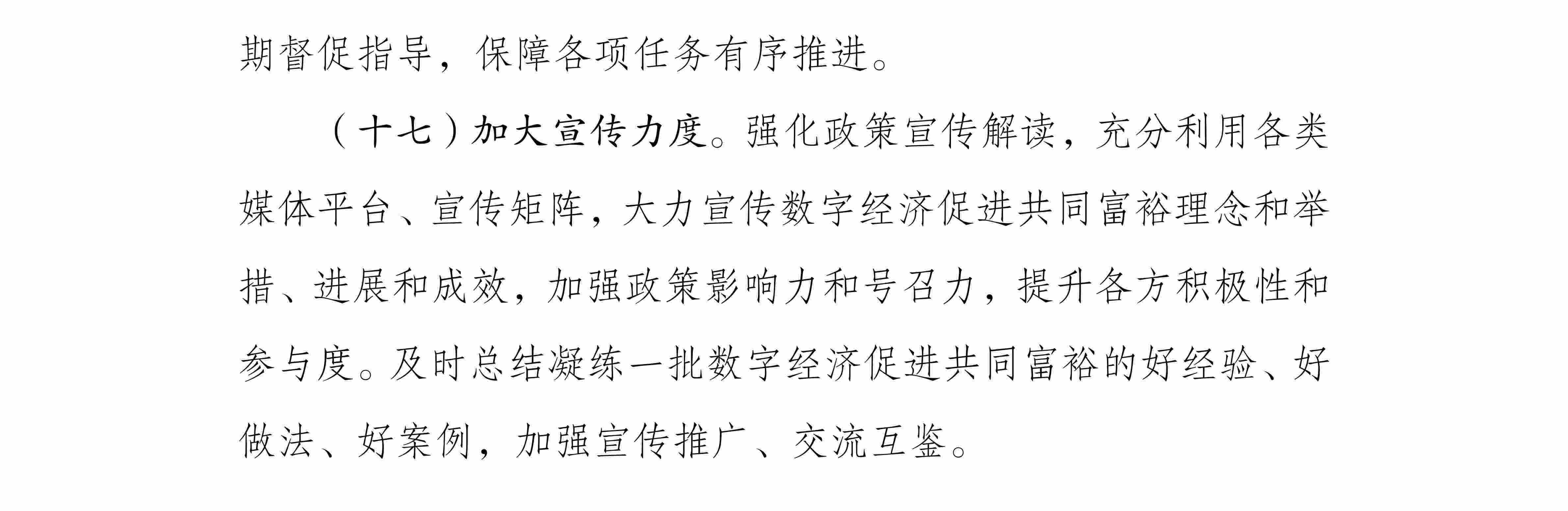 央視網(wǎng)消息:據(jù)國家發(fā)展改革委、國家數(shù)據(jù)局,為全面貫徹黨的二十大精神,按照中央經(jīng)濟(jì)工作會議部署,推動數(shù)字技術(shù)和實(shí)體經(jīng)濟(jì)深度融合,不斷做強(qiáng)做優(yōu)做大我國數(shù)字經(jīng)濟(jì),通過數(shù)字化手段促進(jìn)解決發(fā)展不平衡不充分問題,推進(jìn)全體人民共享數(shù)字時代發(fā)展紅利,助力在高質(zhì)量發(fā)展中實(shí)現(xiàn)共同富裕,研究制定了《數(shù)字經(jīng)濟(jì)促進(jìn)共同富裕實(shí)施方案》。