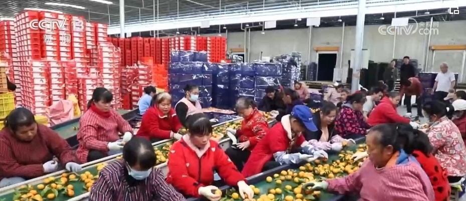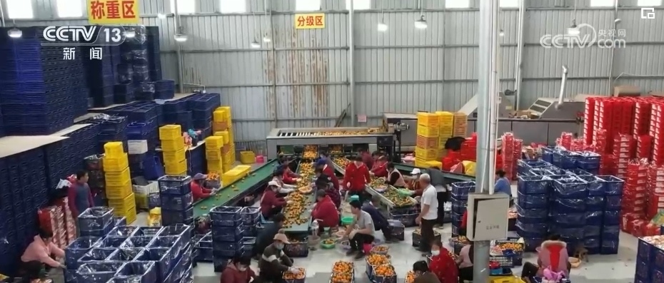 雙向奔赴的情誼在網上不斷發(fā)酵,也帶熱了砂糖橘的銷量。在荔浦這家選果廠車間,機械轟鳴不停運轉,一批批優(yōu)質水果被分送到運輸帶上,經過裝筐、打包、貼標簽、搬運、裝車,新鮮的水果被送往全國各地。