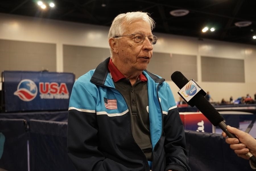 2023年12月16日,中美“乒乓外交”親歷者戴爾·斯威里斯在2023年美國(guó)乒乓球公開賽老年組比賽間隙接受新華社記者專訪。