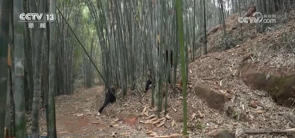 這些竹燈籠的原材料竹子全都來自青神縣本地。青神縣地處丘陵,群山環(huán)抱滋養(yǎng)了數(shù)十萬畝竹林。這幾天,在青神縣海拔最高的天池村,漫山翠竹正值收獲季,種植戶們正抓緊采收新鮮的竹子。