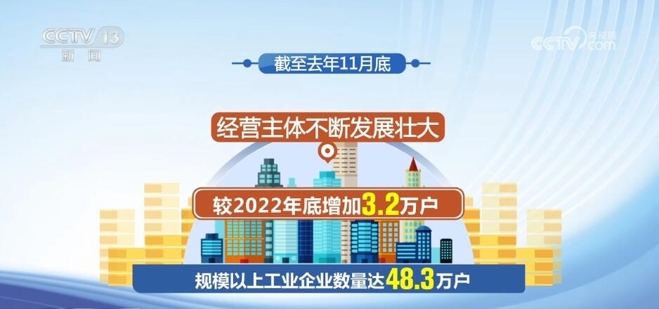 數(shù)據(jù)顯示,截至去年11月底,規(guī)模以上工業(yè)企業(yè)數(shù)量達(dá)48.3萬戶,較2022年底增加3.2萬戶,經(jīng)營主體不斷發(fā)展壯大。制造業(yè)PMI生產(chǎn)經(jīng)營活動預(yù)期指數(shù)自2023年10月連續(xù)3個月上升,全年指數(shù)均高于臨界點,制造業(yè)企業(yè)對發(fā)展信心穩(wěn)定恢復(fù)。