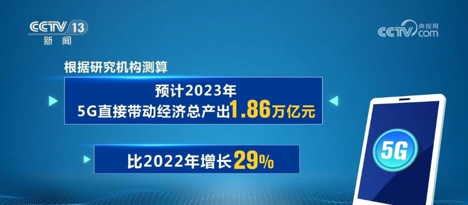 截至2023年底,我國5G移動電話用戶達(dá)8.05億戶。根據(jù)研究機(jī)構(gòu)測算,預(yù)計2023年,5G直接帶動經(jīng)濟(jì)總產(chǎn)出1.86萬億元,比2022年增長29%。