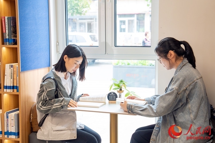 書(shū)吧里,兩位年輕的居民在享受安靜的閱讀時(shí)光。人民網(wǎng)記者 孫翼飛攝