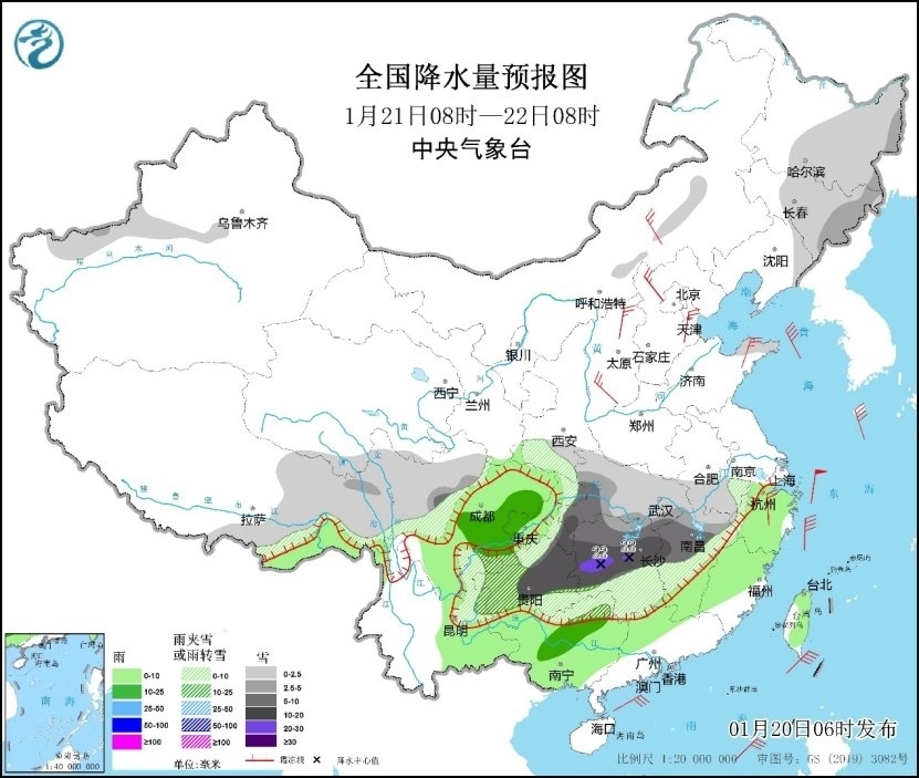 氣象專家提醒,寒潮天氣對我國的影響仍在繼續(xù),公眾需關(guān)注氣溫變化,及時增添衣物,做好防風御寒措施,謹防冬季高發(fā)疾病。南方地區(qū)將出現(xiàn)明顯雨雪天氣,部分地區(qū)降雪較強,公眾需防范低溫和雨雪可能導致的道路濕滑、路面結(jié)冰等對交通出行的不利影響,及時清理路面、屋頂、棚頂?shù)鹊姆e雪,注意安全。