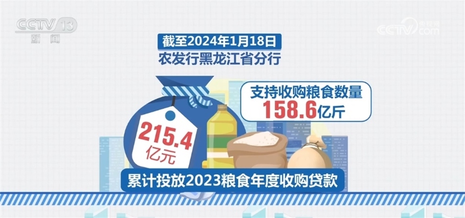 黑龍江是我國秋糧主產區(qū)。截至2024年1月18日,農發(fā)行黑龍江省分行累計投放2023糧食年度收購貸款215.4億元,支持收購糧食數量158.6億斤。其中,累計投放政策性貸款72.7億元,累計投放市場化貸款142.7億元。