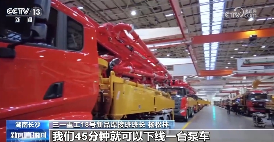 三一重工18號(hào)新品焊接班班長(zhǎng) 楊松林:大家好,我是新品焊接班班長(zhǎng)楊松林。我們工廠主要是生產(chǎn)泵車,看,就是我身后的這個(gè)大家伙。我們45分鐘就可以下線一臺(tái)泵車。