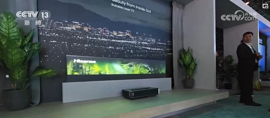 在剛剛結(jié)束的美國國際消費電子展上,超1000家中國企業(yè)參展。一款像地毯一樣能卷起來的卷曲激光電視廣受關(guān)注,引來眾多外國客戶洽談合作。