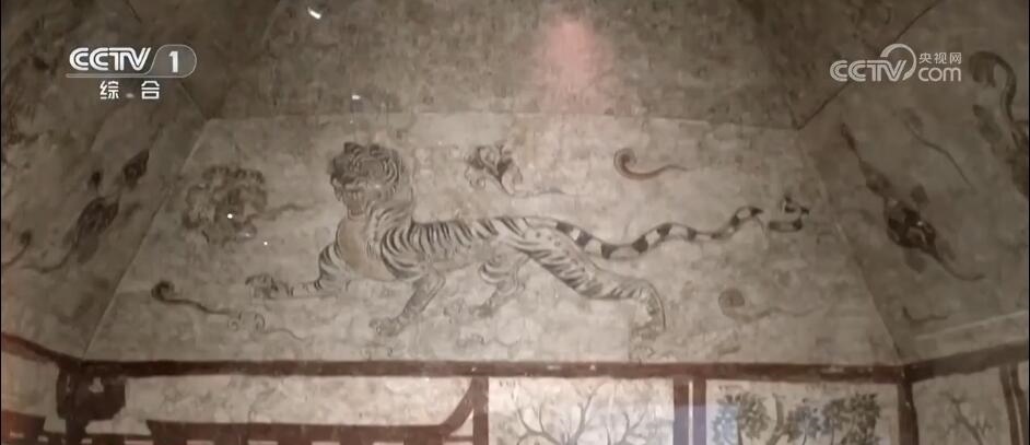 太原市文物考古研究院文物考古研究所副所長(zhǎng) 劉?。?/strong>墓室四壁畫(huà)的是樹(shù)下老人圖,還有一個(gè)比手勢(shì),就和咱們今天的“耶”(很像)。