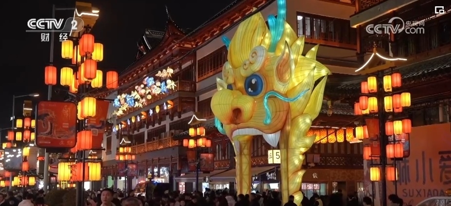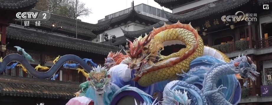 走進豫園,中心廣場上一條巨型黃龍以“飛龍躍海”之姿沖天而起,環(huán)抱一顆被海浪托起的蔚藍之球,守護萬物生長,浪花翻涌間,形態(tài)各異的華夏之龍飛躍共舞,1月21日傍晚,隨著主燈組生肖龍燈組被點亮,2024豫園燈會正式亮燈,不少市民游客用鏡頭記錄下亮燈瞬間。
