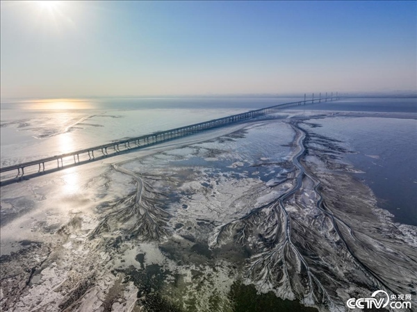 1月24日,浙江省嘉興市寒潮來(lái)襲,錢(qián)塘江結(jié)冰,灘涂上出現(xiàn)巨大的“冰雪潮汐樹(shù)”。