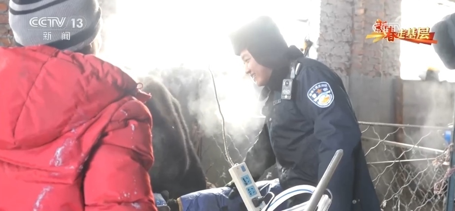 我們在采訪期間,還碰上了在冰雪路段剎車失靈導致側翻的兩位過客。驚魂未定的兩人被路過的轄區(qū)民警帶到了馬背警隊,阿其圖一邊安頓二人吃飯休息,一邊幫他們救援拖車。