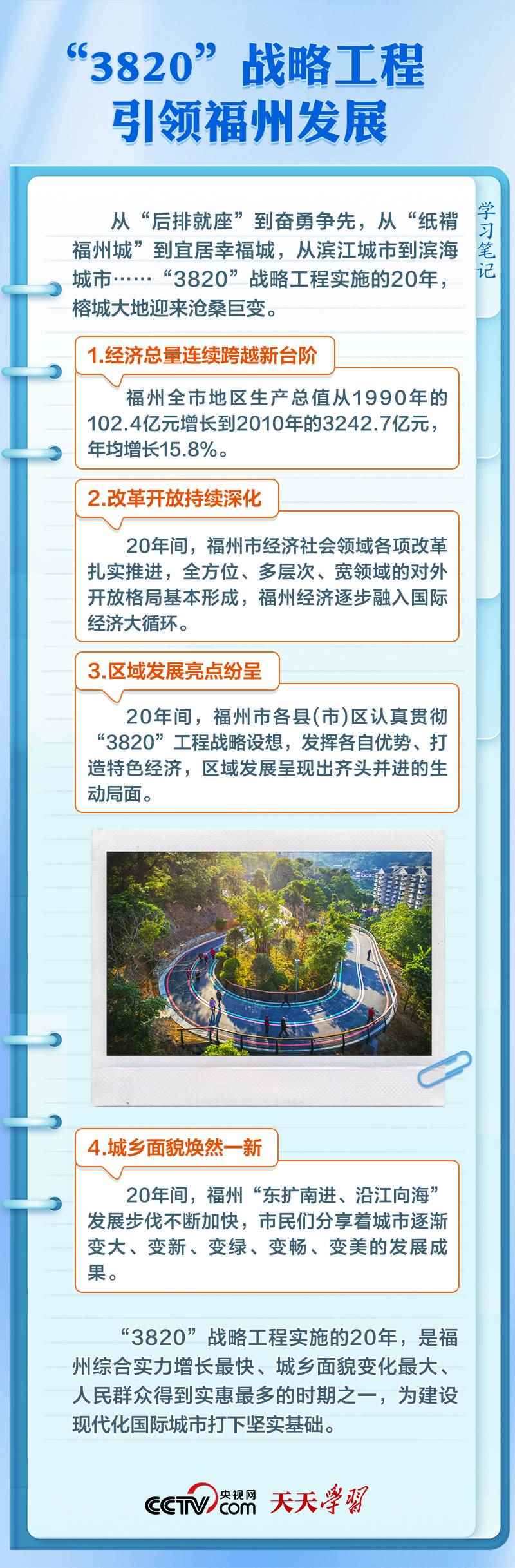 三十多年來,福州堅持“3820”戰(zhàn)略工程思想精髓不動搖,一張藍(lán)圖繪到底,不斷開創(chuàng)現(xiàn)代化國際城市建設(shè)的嶄新局面。“3820”戰(zhàn)略是如何制定的?其思想精髓和時代價值有哪些?央視網(wǎng)《天天學(xué)習(xí)》欄目與您一起學(xué)習(xí)領(lǐng)悟。