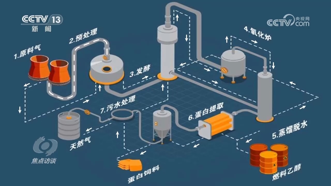 河北首朗新能源科技有限公司副總經(jīng)理?xiàng)钇G:“首先工業(yè)尾氣通過(guò)管道輸送到氣體預(yù)處理工段,經(jīng)過(guò)簡(jiǎn)單的壓縮和煤氣凈化,由管道輸送到核心發(fā)酵工段,氣體從發(fā)酵罐的底部進(jìn)入到頂部,單程只有幾十秒的時(shí)間。”