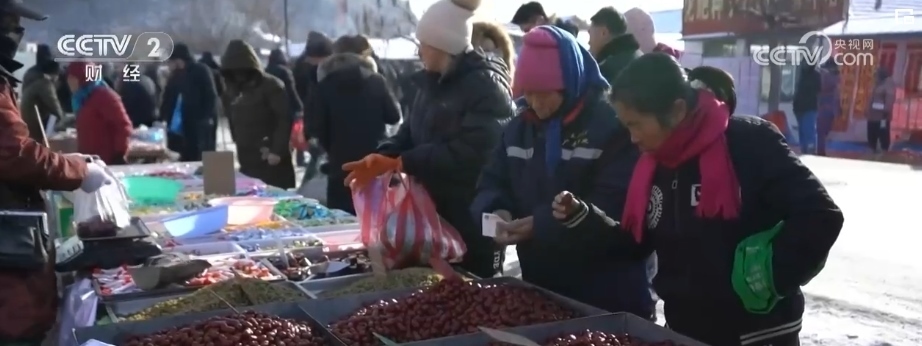 在遼寧開原市松山鎮(zhèn)的這處大集,目光所及之處,吆喝聲、買賣聲此起彼伏。瓜果蔬菜、雞鴨魚肉、各種零食應有盡有,無一不讓人感受到濃濃的年味。