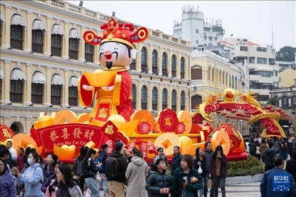 1月27日,游客在澳門(mén)議事亭前地游覽。