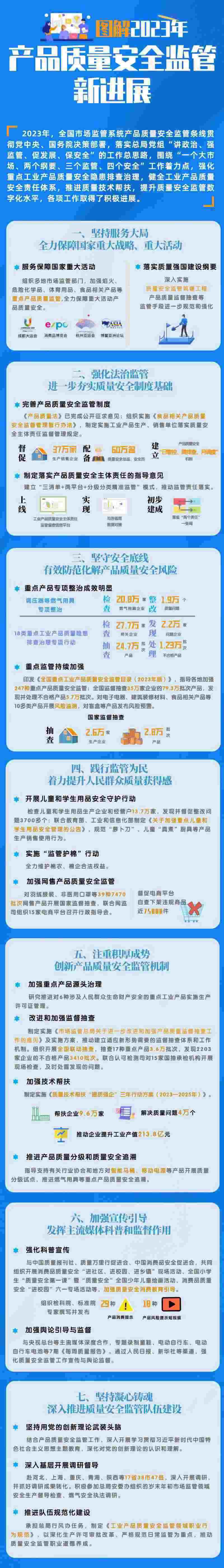 同時(shí)市場(chǎng)監(jiān)管總局2024年將分類制定20種重點(diǎn)工業(yè)品、30種重點(diǎn)消費(fèi)品和13種材質(zhì)食品相關(guān)產(chǎn)品生產(chǎn)單位質(zhì)量安全風(fēng)險(xiǎn)管控清單,對(duì)質(zhì)量下滑明顯、安全隱患突出的高風(fēng)險(xiǎn)產(chǎn)品,研究實(shí)行生產(chǎn)準(zhǔn)入管理。選擇50種關(guān)系國(guó)計(jì)民生、量大面廣、社會(huì)關(guān)注度高的重點(diǎn)產(chǎn)品,連續(xù)開(kāi)展評(píng)價(jià)性抽查,為分析形勢(shì)、評(píng)估產(chǎn)品質(zhì)量安全狀況提供參考。