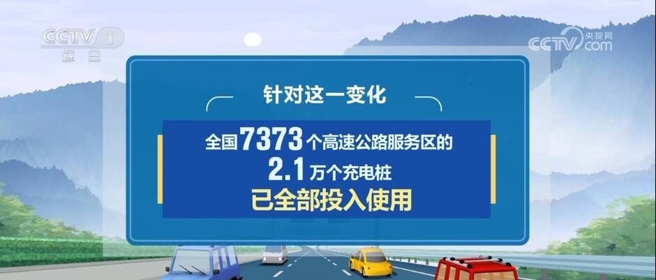 今年公路出行還有一個(gè)新變化,就是在小客車出行當(dāng)中,新能源車輛占比增多。針對(duì)這一變化,目前,全國(guó)7373個(gè)高速公路服務(wù)區(qū)的2.1萬個(gè)充電樁已全部投入使用。