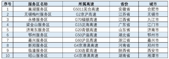 表 春節(jié)較繁忙服務(wù)區(qū) (全文圖表均來自交通運輸部路網(wǎng)監(jiān)測與應(yīng)急處置中心官方微博)