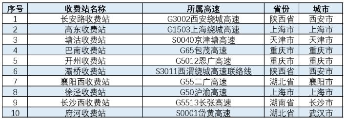 春節(jié)期間,全國高速公路預(yù)計易發(fā)生擁堵緩行的收費站,如下表所示。