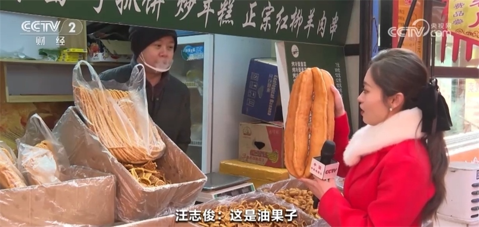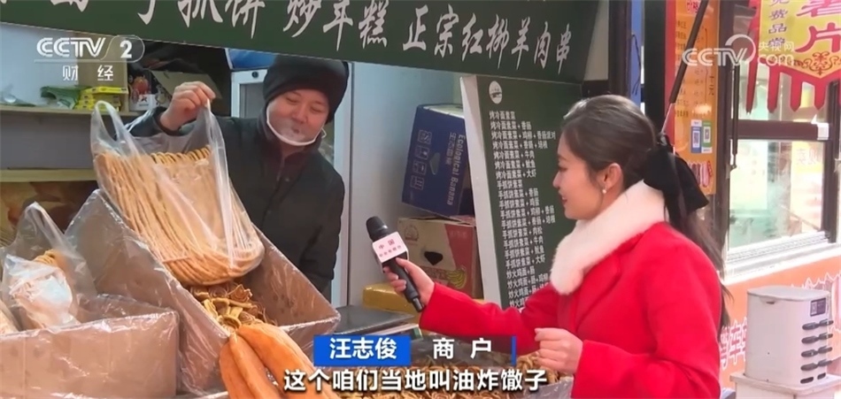 總臺(tái)記者 馬雅慧:今天一來(lái)到這里我就聞到了濃濃的香料味兒,大家看我身旁的這些都是青海特色的油炸年饃,當(dāng)?shù)厝艘步杏驼ü印@习?,我看這里款式各式各樣的都有,您能給我們介紹一下嗎?