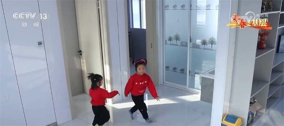 吉林省舒蘭市開原鎮(zhèn)新開村村民 曲玲:現(xiàn)在搬進這個新房子,屋子也亮堂了,采用的是電地熱,你看剛才我們家小孩都不用穿拖鞋就這么跑(也不冷),還有室內(nèi)馬桶、冷熱水,比我們原來房子要好多了。