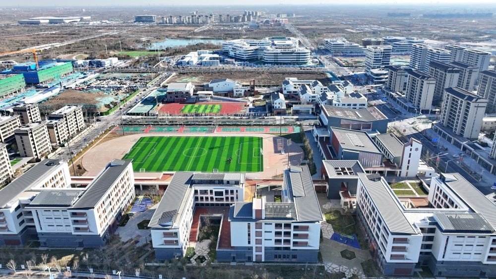 雄安新區(qū)啟動(dòng)區(qū)的北京四中雄安校區(qū)和雄安史家胡同小學(xué)(無人機(jī)照片)。2023年11月30日新華社記者牟宇 攝