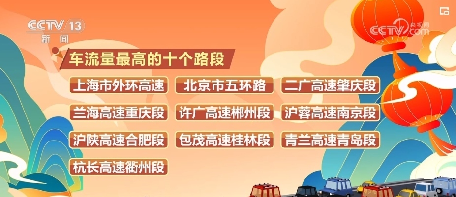 這兩天,2024年春運開始后高速公路迎來第一輪高峰。根據(jù)千方科技利用公路流量監(jiān)測數(shù)據(jù)的預(yù)測,車流量最高的十個路段是:上海市外環(huán)高速、北京市五環(huán)路、二廣高速肇慶段、蘭海高速重慶段、許廣高速郴州段、滬蓉高速南京段、滬陜高速合肥段、包茂高速桂林段、青蘭高速青島段、杭長高速衢州段。