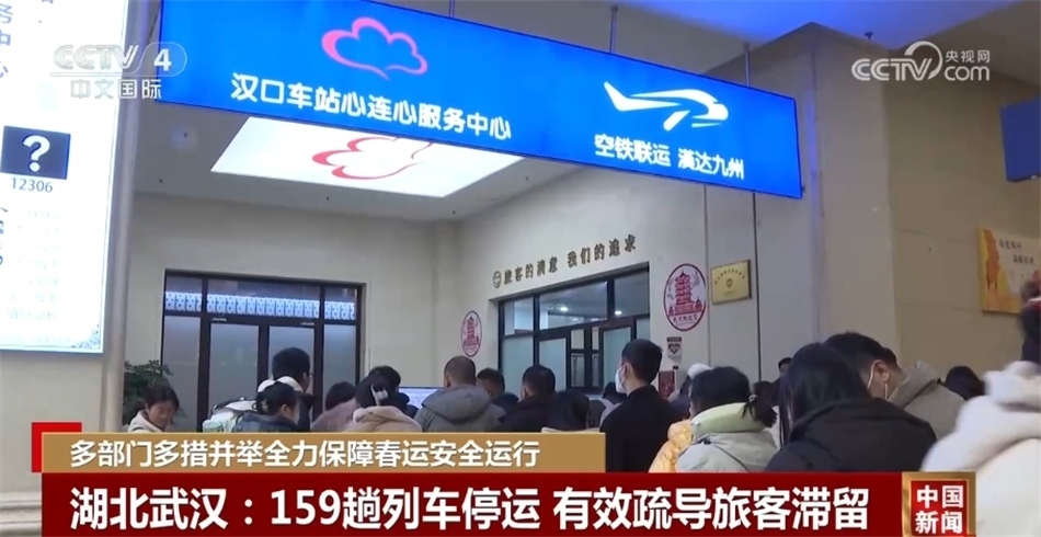 受雨雪天氣影響,截至3日上午,湖北武漢159趟列車停運,部分列車出現(xiàn)晚點,旅客出行受到較大影響。為避免出現(xiàn)旅客滯留的情況,漢口火車站增開了安檢通道,做好引導服務,同時啟用臨時候車區(qū)域,為列車晚點的旅客提供舒適的候車環(huán)境。同時,為了應對節(jié)前出行高峰,武漢鐵路部門還通過強化空鐵聯(lián)運,為有換乘飛機需求的旅客提供便利。