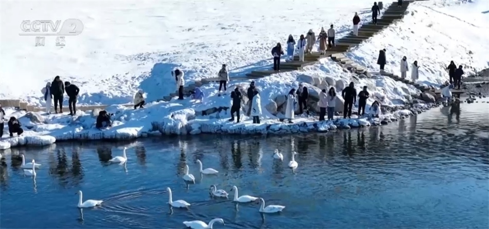總臺記者 李楠:這里就是天山環(huán)抱中的新疆賽里木湖景區(qū),周圍的群山和湖面仍舊被冰雪覆蓋。在我身后正在舉辦冰雪“那達慕”迎春活動,當?shù)氐霓r牧民群眾和來自全國各地的游客正參與其中。