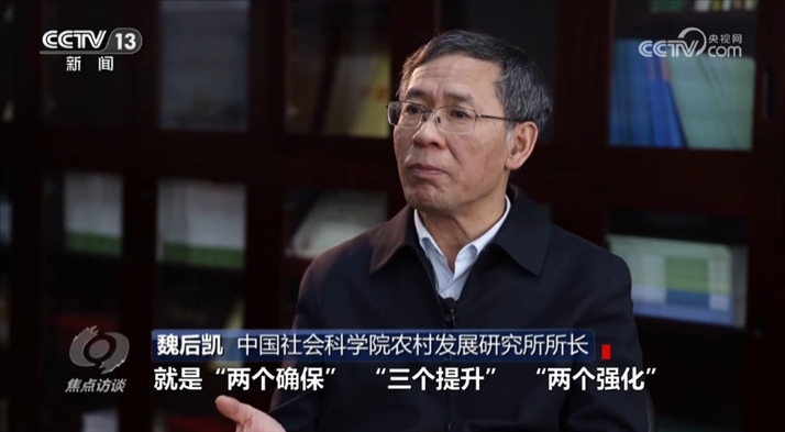 魏后凱:“今年‘三農(nóng)’工作的重要任務(wù)是‘兩個(gè)確?!齻€(gè)提升’‘兩個(gè)強(qiáng)化’?!畠蓚€(gè)確?!堑拙€任務(wù),要確保國(guó)家糧食安全,確保不發(fā)生規(guī)模性返貧?!齻€(gè)提升’,提升鄉(xiāng)村產(chǎn)業(yè)發(fā)展水平,提升鄉(xiāng)村建設(shè)水平,提升鄉(xiāng)村治理水平?!畠蓚€(gè)強(qiáng)化’,強(qiáng)化科技和改革的雙輪驅(qū)動(dòng),強(qiáng)化農(nóng)民增收的舉措。”