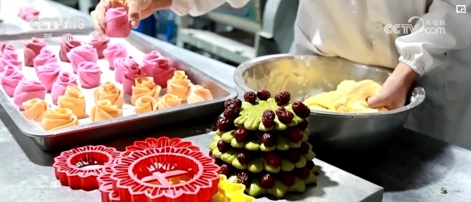 不僅有面花,北方的餐桌還得有饅頭。在山東,饅頭不僅是過(guò)年的標(biāo)配,也是臘月里走俏的年貨。臨近春節(jié),濟(jì)南的一家饅頭房里,大家熱火朝天地忙碌趕工,訂單量翻了三翻。