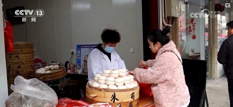 對(duì)于當(dāng)?shù)厝藖?lái)說(shuō),買(mǎi)“紅印饅頭”的日子也就是闔家團(tuán)聚的日子。一大桌子的年夜飯,“紅印饅頭”是壓軸菜,不少市民專(zhuān)程前來(lái)備年貨。