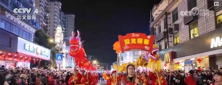 這幾天在廈門(mén)同安,盛大的傳統(tǒng)踩街民俗活動(dòng)與古城燈會(huì)同步開(kāi)啟。舞龍、舞獅、腰鼓隊(duì)等巡游隊(duì)伍從同安城中心出發(fā),表演者們身著盛裝、手持道具,先后經(jīng)過(guò)同安鐘樓、同安縣衙舊址等地,與市民游客熱情互動(dòng)。