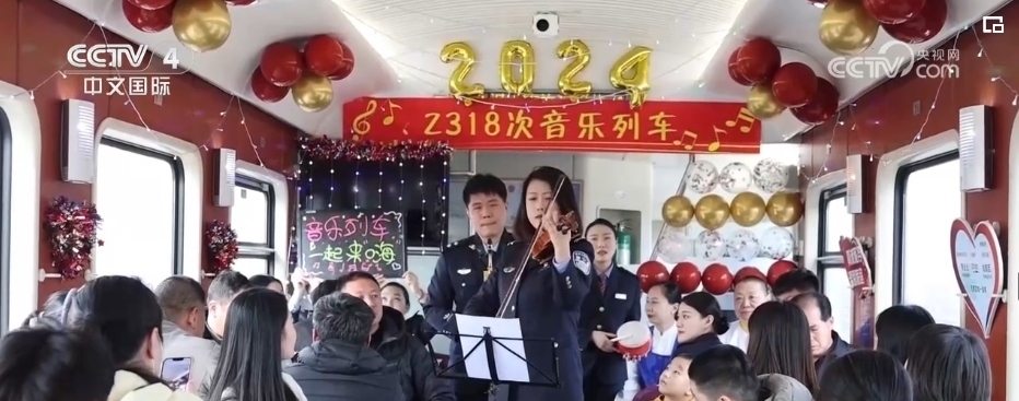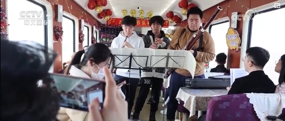 隨著春節(jié)臨近,在外務(wù)工的游子們紛紛踏上了回家的旅途。在青島北開(kāi)往成都西Z318次列車(chē)上,悅耳歡快旋律響起,列車(chē)工作人員邀請(qǐng)3位學(xué)生旅客,為大家演奏了悠揚(yáng)歡快的樂(lè)曲。