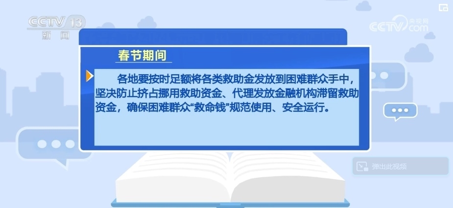 各地要按時(shí)足額將各類(lèi)救助金發(fā)放到困難群眾手中,堅(jiān)決防止擠占挪用救助資金、代理發(fā)放金融機(jī)構(gòu)滯留救助資金,確保困難群眾“救命錢(qián)”規(guī)范使用、安全運(yùn)行。