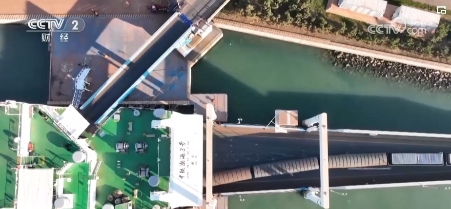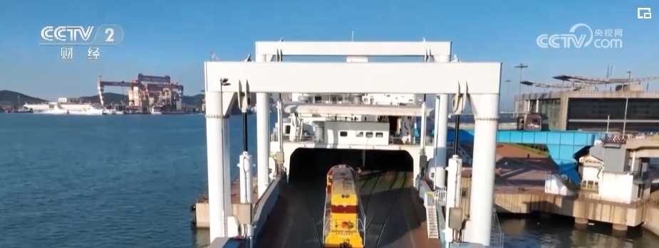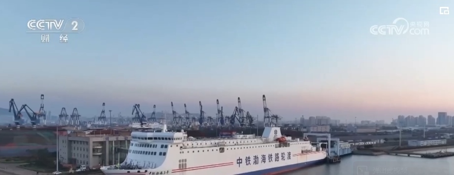 中鐵渤海3號渡船全長182.6米、寬24.8米,滿載排水量可達(dá)16229噸,單航次可載運(yùn)一列50節(jié)貨物列車和50輛載重汽車、25輛小汽車以及716名旅客。