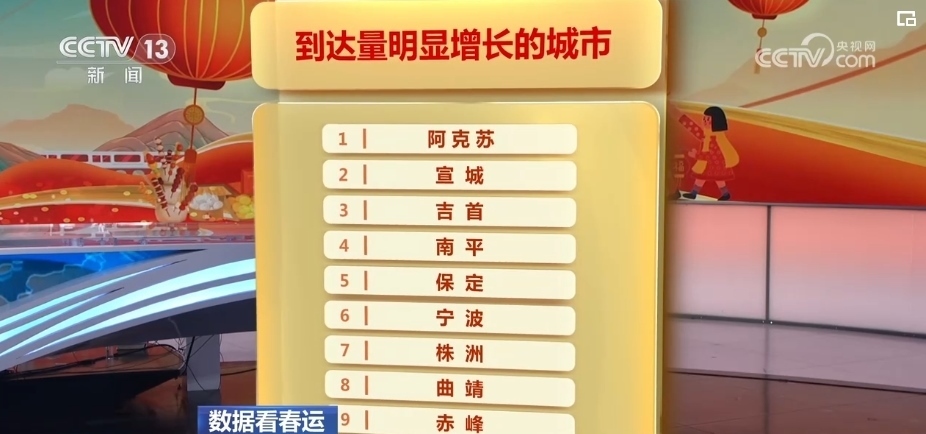 在2月7日的春運(yùn)熱力圖上,最熱門的城市變化不大,根據(jù)12306的票務(wù)數(shù)據(jù),預(yù)計2月7日將有48個城市的到達(dá)人次出現(xiàn)明顯增長。