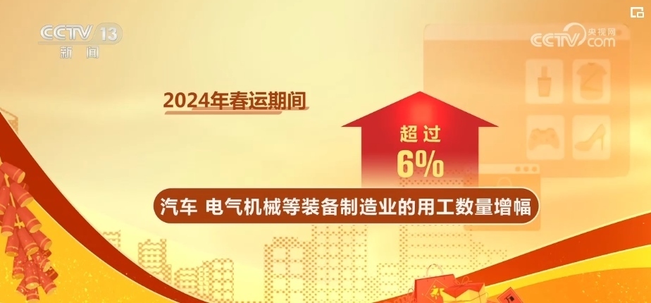 與前兩年的數(shù)據(jù)相比,也有不少人選擇春節(jié)不回家,堅(jiān)守崗位投入到工作當(dāng)中。北京大學(xué)與中國聯(lián)通智慧足跡的聯(lián)合團(tuán)隊(duì)在對近幾年春節(jié)前后的手機(jī)信令數(shù)據(jù)進(jìn)行建模分析后,發(fā)現(xiàn)2024年春運(yùn)期間,全國2000多個重點(diǎn)產(chǎn)業(yè)園區(qū)的用工數(shù)量將比2023年同期增長5.8%。