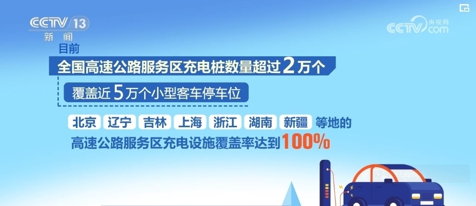 交通運(yùn)輸部數(shù)據(jù)顯示,目前,全國(guó)高速公路服務(wù)區(qū)充電樁數(shù)量超過2萬(wàn)個(gè),覆蓋近5萬(wàn)個(gè)小型客車停車位。北京、遼寧、吉林、上海、浙江、湖南、新疆等地的高速公路服務(wù)區(qū)充電設(shè)施覆蓋率達(dá)到100%。