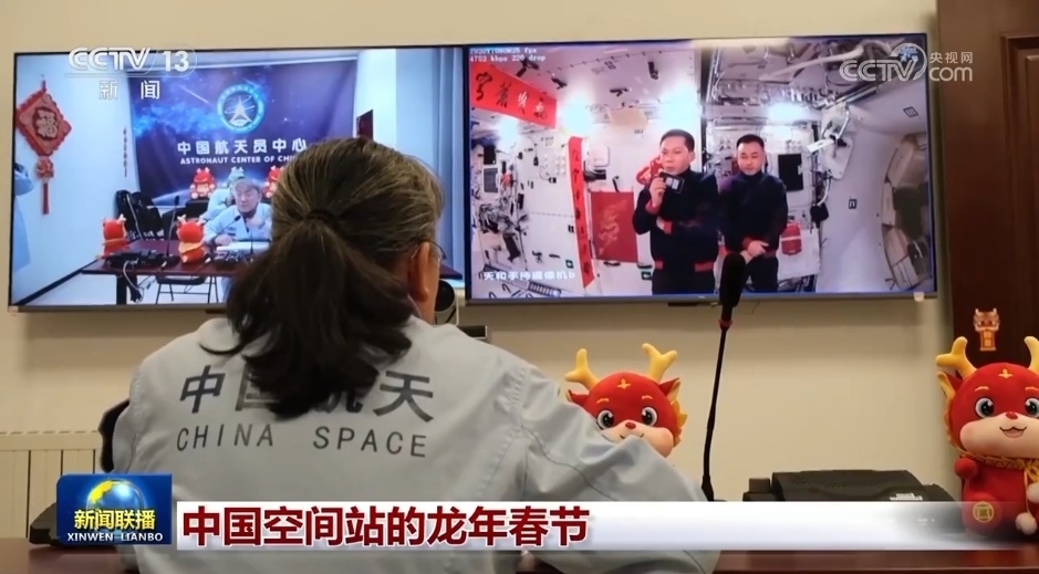央視網消息(新聞聯播):龍騰九州、春暖人間,在距離地球約400公里的中國空間站,正在“太空出差”的神舟十七號航天員乘組日程過半,3名航天員在“太空家園”里歡樂過年。