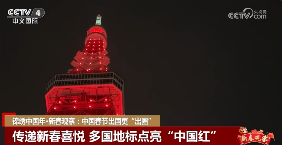 為歡慶春節(jié),多國(guó)地標(biāo)建筑都點(diǎn)亮了“中國(guó)紅”。英國(guó)倫敦的巨型摩天輪“倫敦眼”亮起紅色和金色燈光,象征幸福吉祥;在日本東京,東京塔換上一身紅裝,為龍年送上祝福;加拿大最大城市多倫多市的地標(biāo)建筑加拿大國(guó)家電視塔也在落日一個(gè)小時(shí)后開始“亮紅”,迎接龍年新春的到來(lái)。