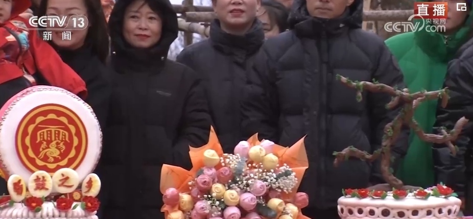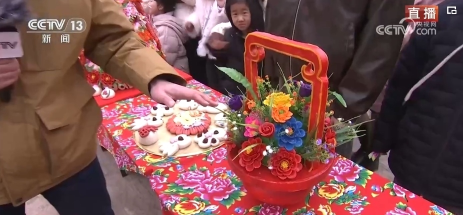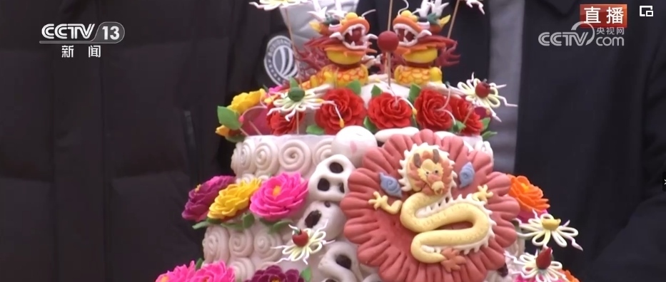 在春節(jié)期間,家家戶戶都會(huì)蒸年饃,每個(gè)年饃都有不同的寓意,花開富貴、步步高升等,龍年特色的花饃非常熱銷。這個(gè)龍型年饃上彩色的元素都是可以食用的,黃色的身子是南瓜汁,藍(lán)色是當(dāng)?shù)匾环N茶葉水調(diào)出來的。